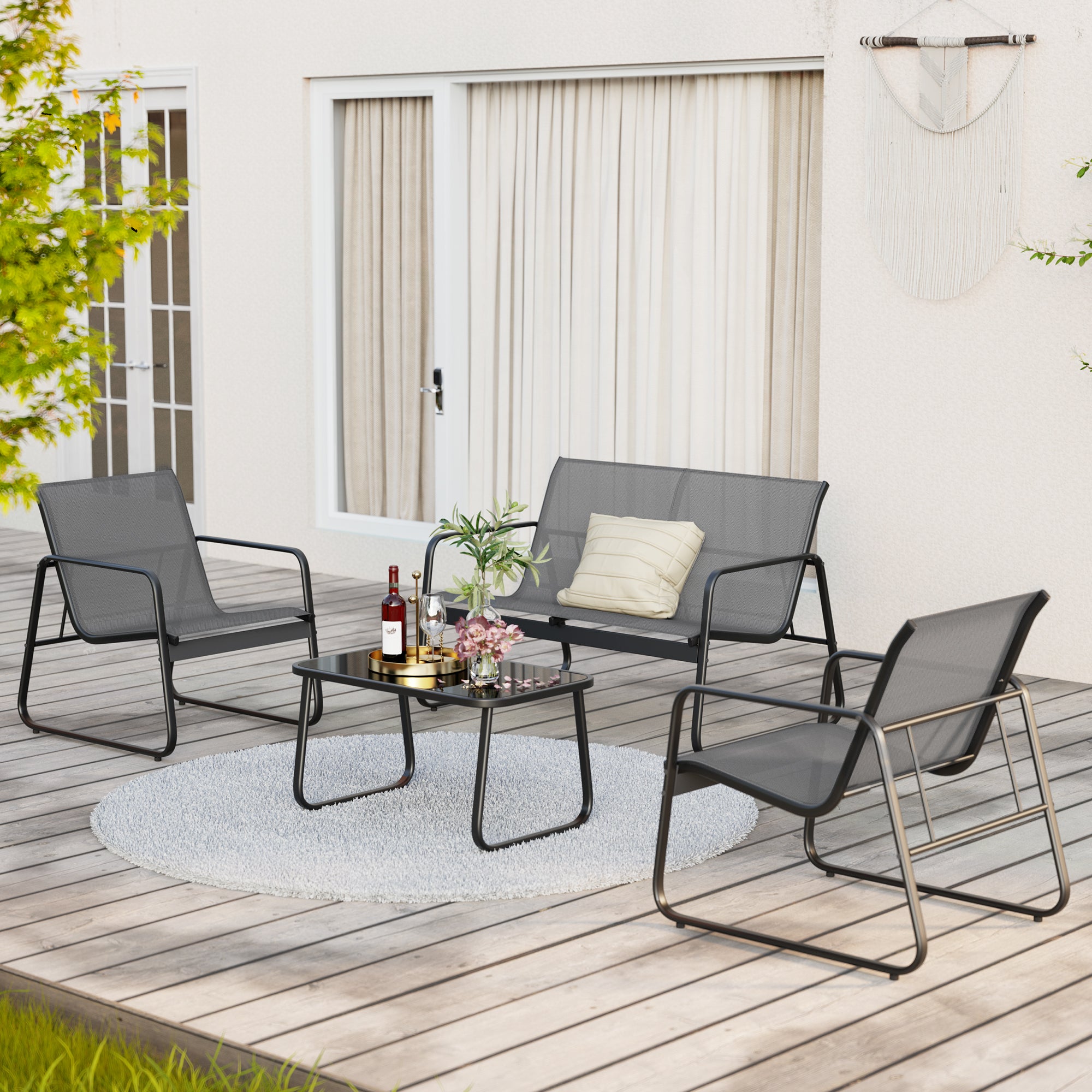 4 Piece Patio Furniture Set, Bistro Set with Loveseat and 2 Single Cha – LofkaHome