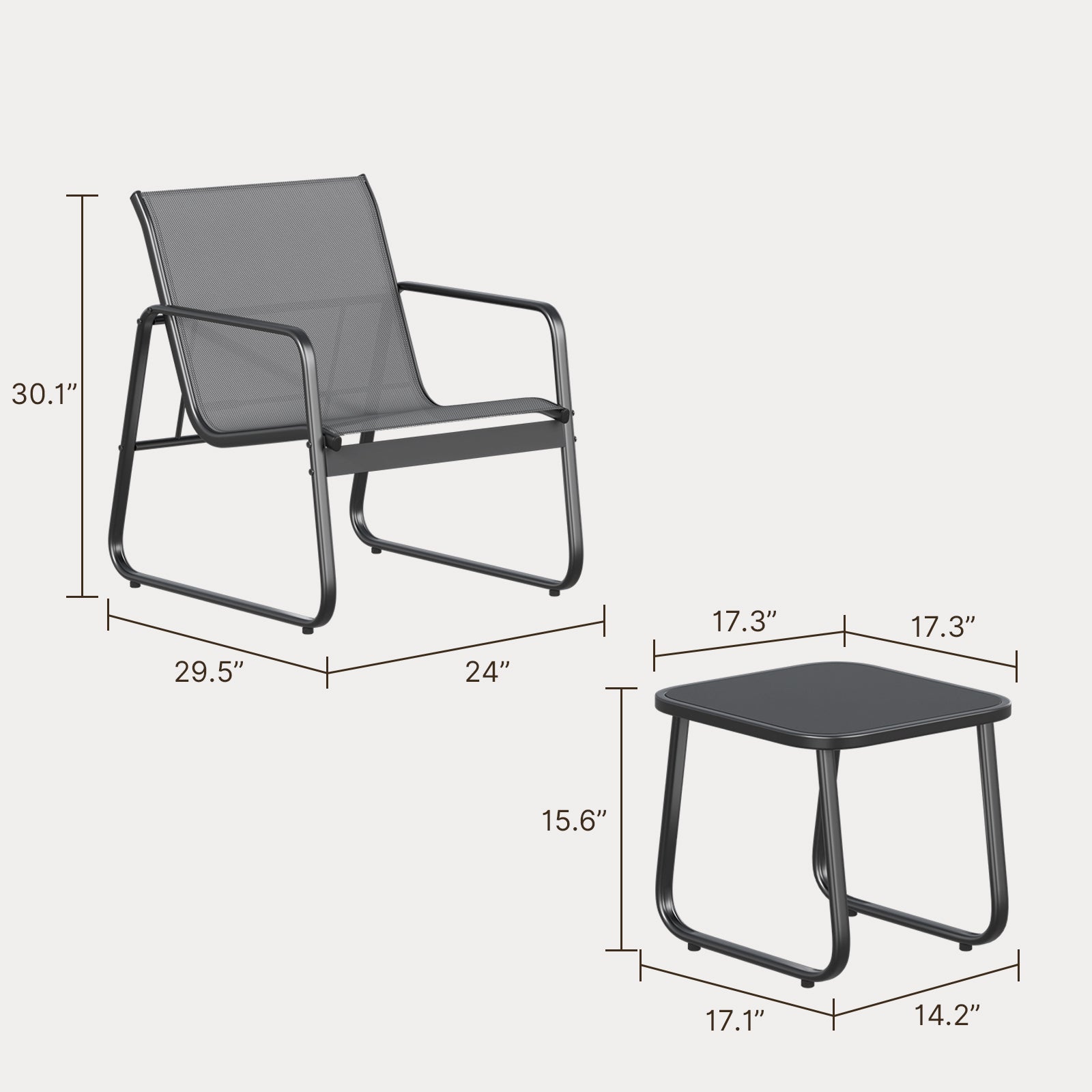 Patio Chairs Set of 2, Patio Furniture Set with Metal Frame Glass Tabl – LofkaHome